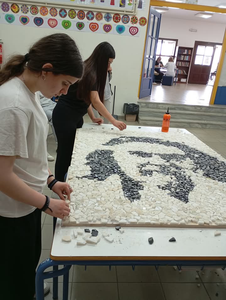 Μαζί με τους μαθητές και τους εκπαιδευτικούς του σχολείου, τοποθέτησαν μία-μία τις ψηφίδες με υπομονή, έμπνευση και αγάπη, για να αποτυπώσουν το πρόσωπο του Βαγγέλη Παπαθανασίου, σε μια πράξη βαθιάς τιμής και μνήμης.