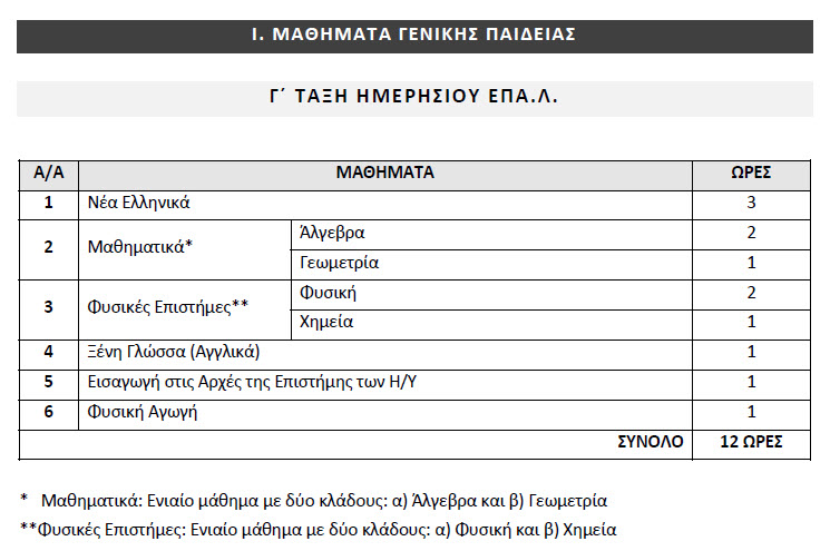 Στη Γ΄ ΤΑΞΗ υπάρχουν συνολικά 4 ειδικότητες, οι μαθητές/μαθήτριες επιλέγουν μια από αυτές που περιλαμβάνονται στον τομέα σπουδών της επιλογής τους και διδάσκονται μαθήματα γενικής παιδείας (12 ώρες) και μαθήματα της ειδικότητας που έχουν επιλέξει (23 ώρες, θεωρητικά και εργαστηριακά).