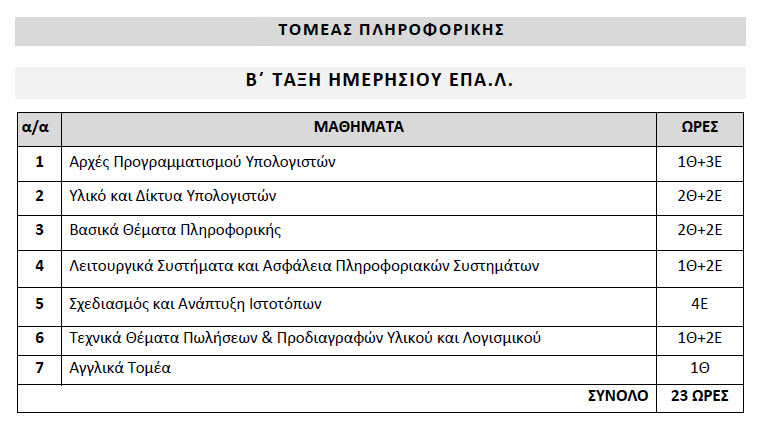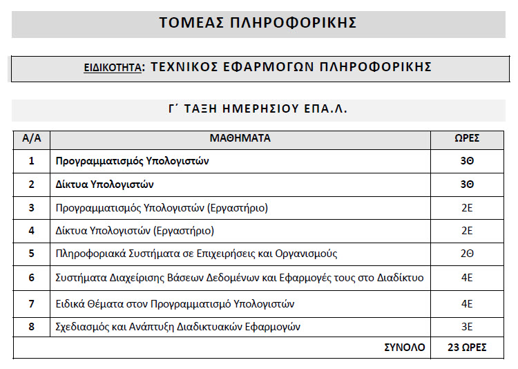 2. Τεχνικός Εφαρμογών Πληροφορικής (ωρολόγιο πρόγραμμα)